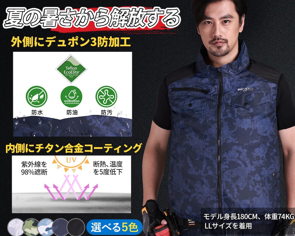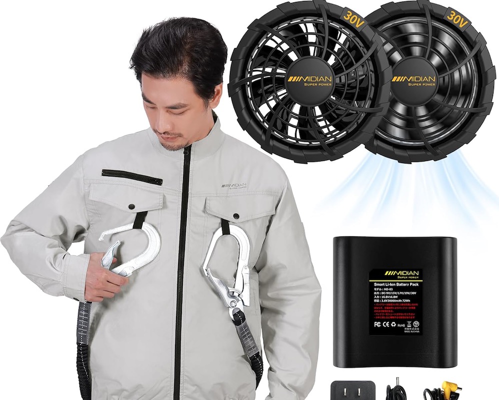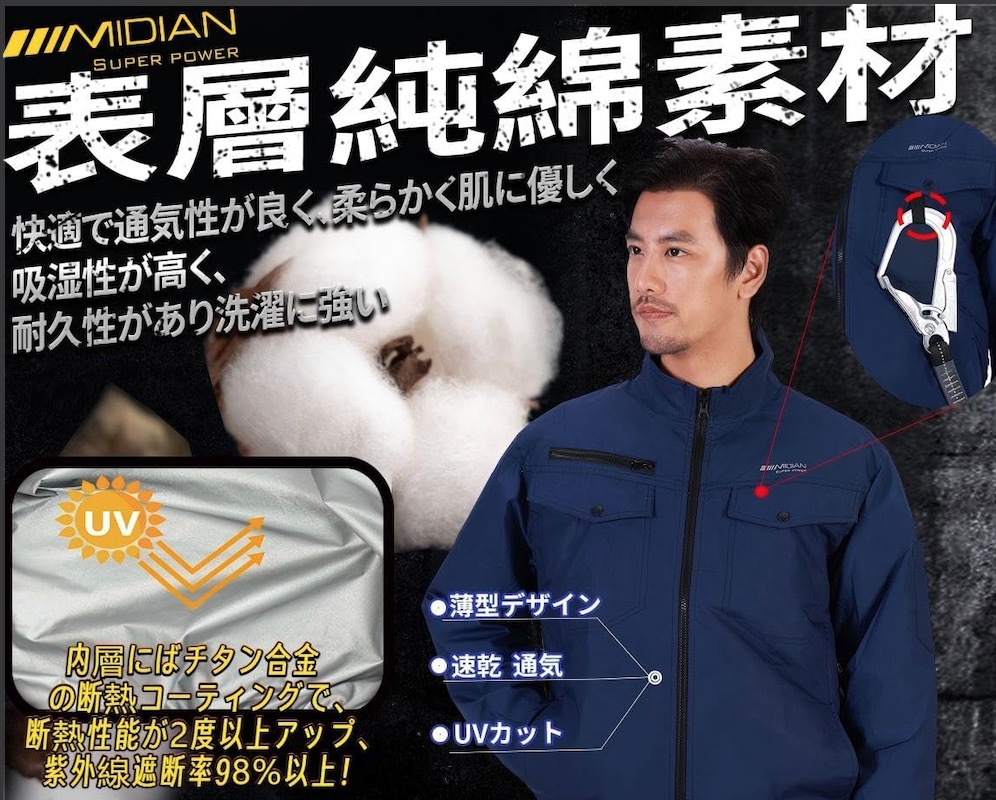 夏の熱中症対策に必須のファン付き作業服、ベルチェ冷却ファン付き作業着のメーカー直販サイド、ファン付き作業服の中にファンで風を送り込み涼しく快適に作業が可能。ベルチェ冷却 ファン付き作業着は、高温環境下での作業や屋外活動を想定し、送風と冷却の組み合わせにより着用時の快適性を高める作業用ウェアです。背面ファンによる風 循環させると同時に冷却プレートなどを用い、衣服内の熱こもりを抑えることを目的としています。